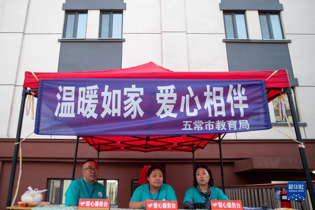 8月9日,在五常市時代中學集中安置點,五常市鐵路學校的教師志愿者在崗位值守。