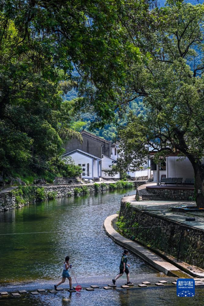 8月10日,游客在寧波市鄞州區城楊村游玩。該村是寧波“最美精品線路”的重要節點。2020年城楊村積極推動特色鄉村旅游產業發展,集體經濟年收入從不足10萬元發展到如今年收入已超50萬元,每年接待游客超15萬人次。