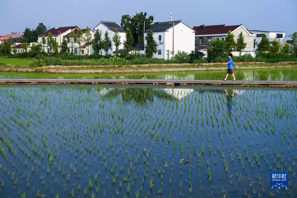 8月9日拍攝的寧波市鎮海區莊市街道永旺村的稻田景觀帶。永旺村通過盤活農村閑置農田和農房,完善“農業+”鄉村旅游產業鏈,并引入科創文創產業,打造集零售、餐飲、休閑等服務功能于一體的特色商業街,不斷豐富鄉村業態,走出一條獨具特色的共富新路子。