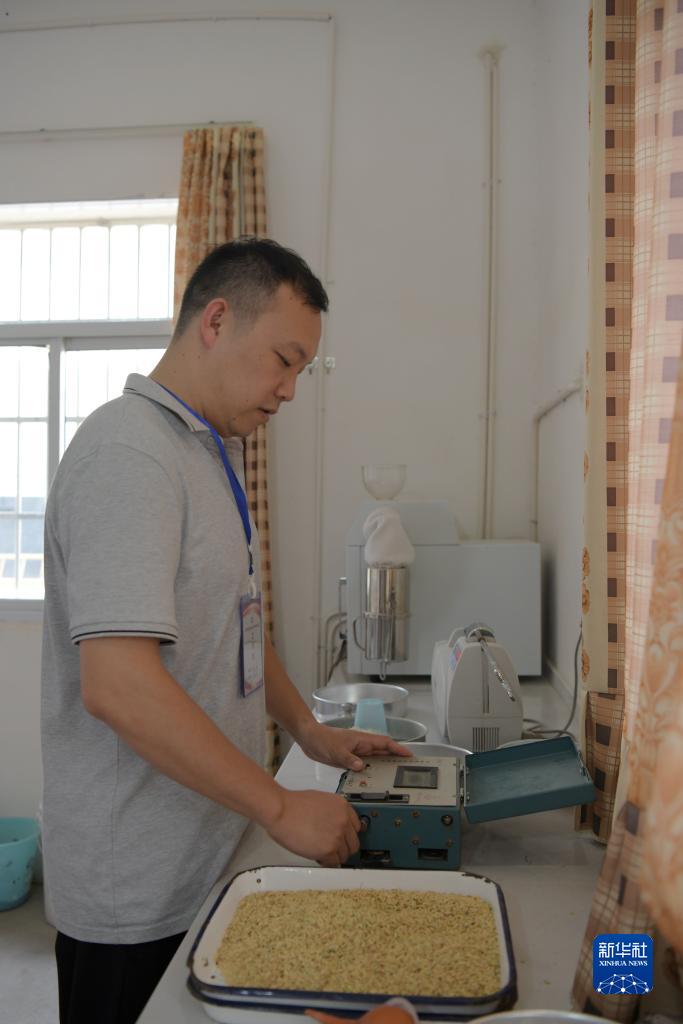 在江西省南昌縣橫崗國家糧食儲備庫,工作人員通過設備檢測抽樣糧食的水分、品質、農藥殘余、重金屬等情況(8月8日攝)。
