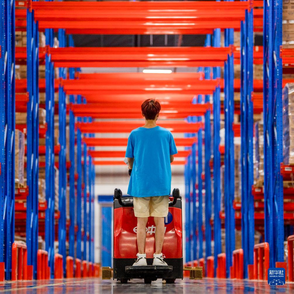 8月10日,在浙江省金華市金義綜合保稅區云倉跨境華東中心倉內,工作人員在發貨前理貨。