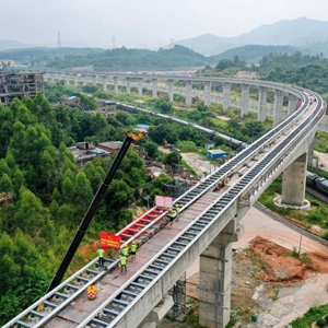 當日,中鐵十一局建設者將最后一榀10米磁浮軌排穩穩鋪設在長隆特大橋上,標志著廣東首條中低速磁浮線——清遠磁浮旅游專線實現軌道貫通。