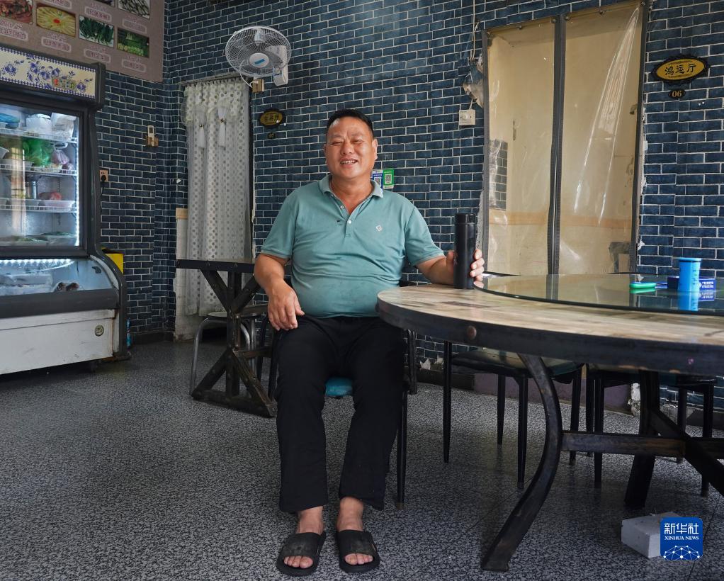 2023年7月16日,在江西省九江市永修縣吳城鎮,退捕漁民甘華濱在自家開辦的“甘哥燒菜館”留影。