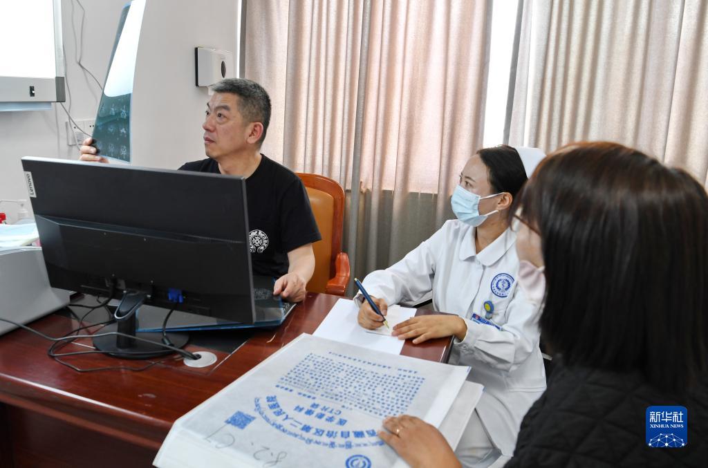 8月10日,北京天壇醫院神經外科學中心主任醫師隋大立(左)和西藏自治區第二人民醫院的醫生為患者義診。