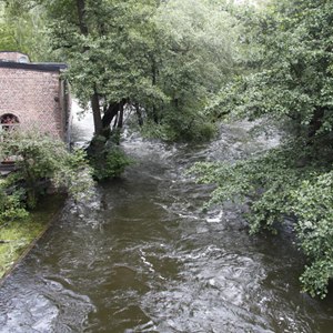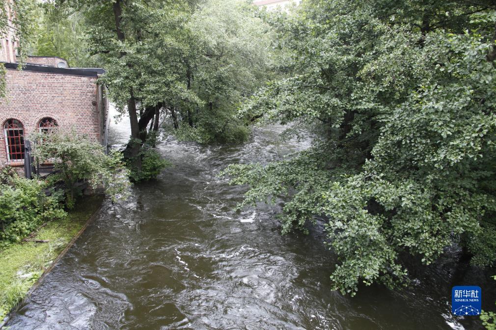 這是8月10日拍攝的位于挪威首都奧斯陸市區的阿克河。挪威水利部門數據顯示,由于近期強降雨引發的洪水,阿克河流量增至平時的10倍以上。