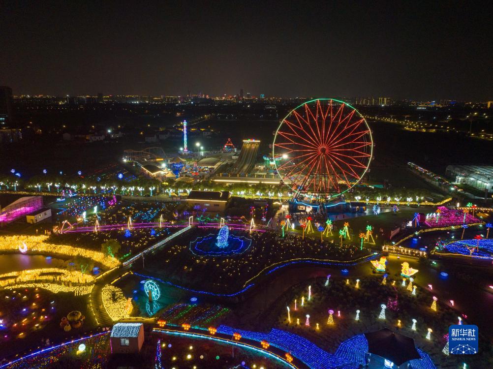 8月10日拍攝的寧波市江北區達人村景區夜景(無人機照片)。