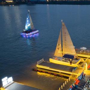 消費者在西安城墻南門內一家酒吧消費休閑(8月10日攝,無人機照片)。
