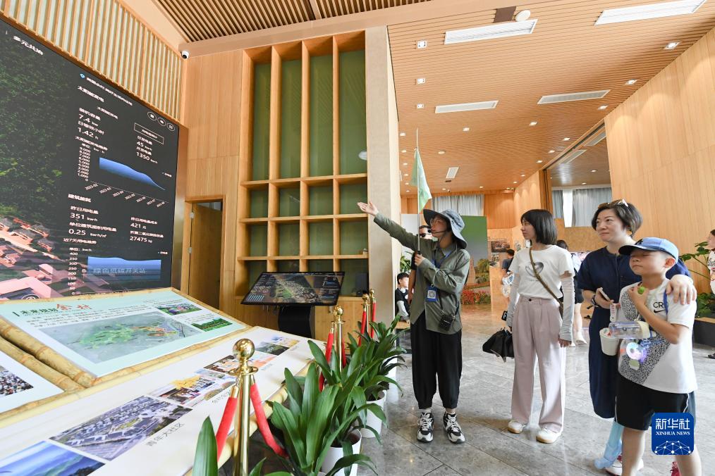 8月11日,游客在安吉余村未來鄉村展館了解當地綠色用能情況。