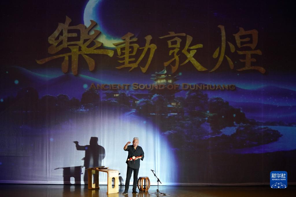 8月9日,在《樂動敦煌》演出現場,敦煌古樂全球推廣大使、國樂藝術家方錦龍在向觀眾介紹傳統音樂。
