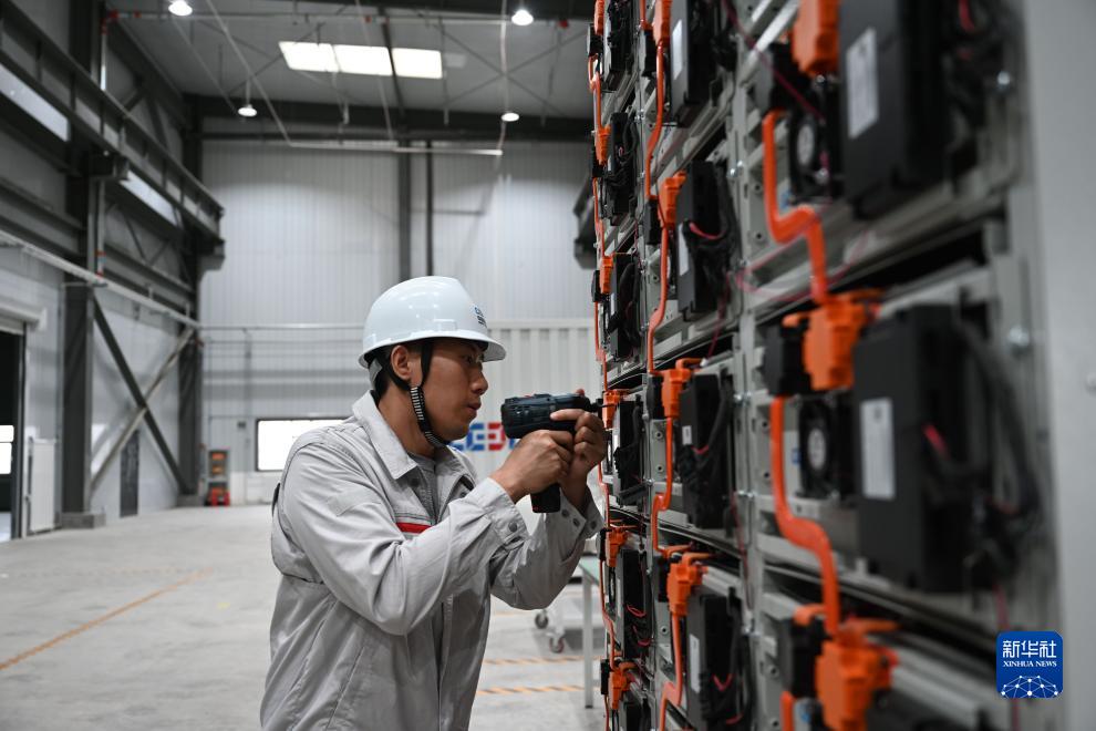 8月10日,工人在葛洲壩(甘肅)能源科技有限公司組裝電化學儲能裝置。
