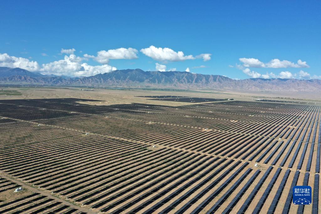 這是中國能建張掖甘州南灘30萬千瓦光伏發電項目(8月11日攝,無人機照片)。