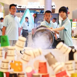 8月10日,夏令營學生在河南省科技館“科學之夜”活動中參觀體驗。