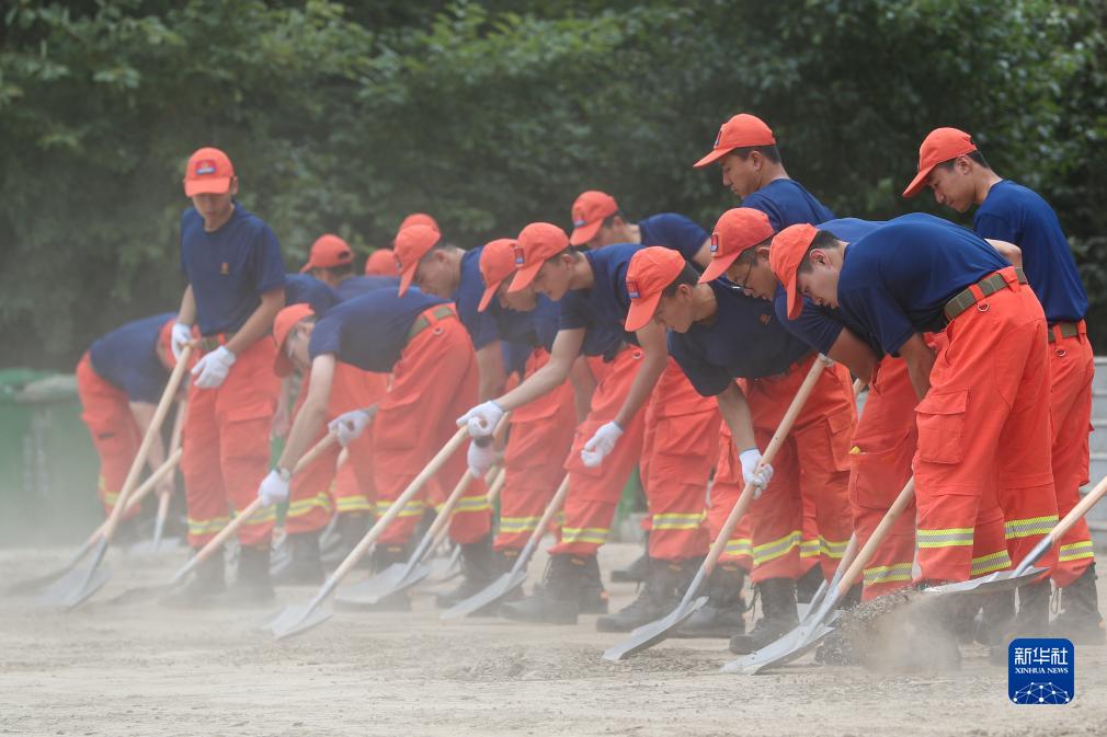 8月11日,在黑龍江省尚志市東浦公館小區附近,哈爾濱市森林消防支隊的消防員在清理道路。