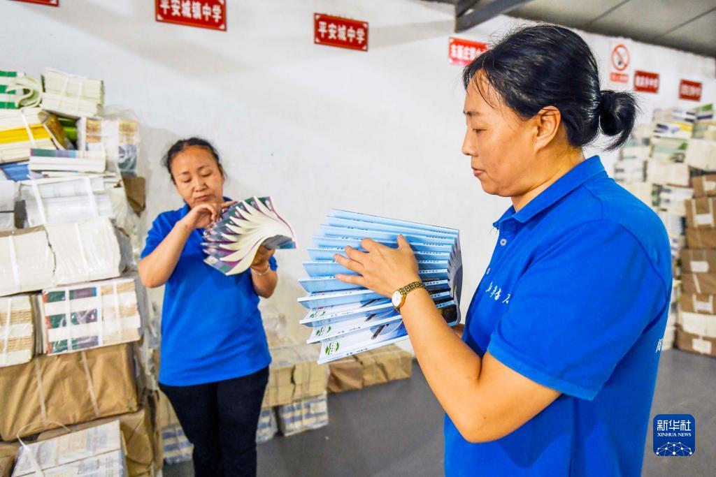 8月11日,河北省遵化市新華書店的工作人員在清點學生教材。