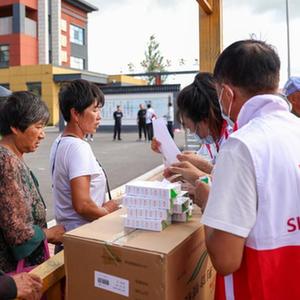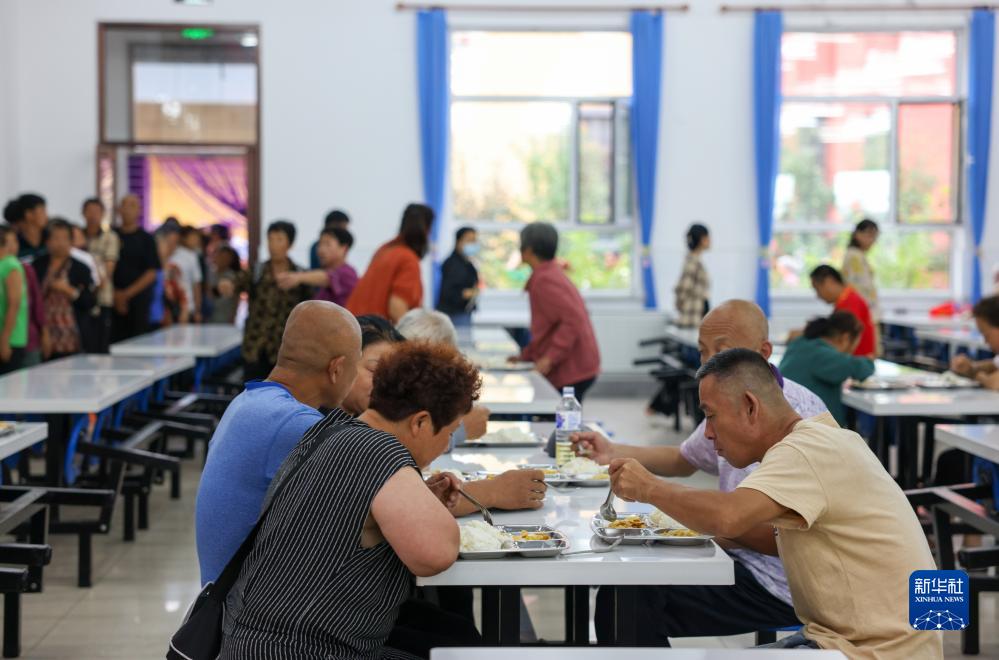 8月11日,居民在吉林省舒蘭市舒蘭三中居民安置點食堂吃飯。