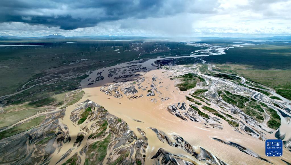 在沱沱河與當曲匯合處的囊極巴隴拍攝的辮狀河道(7月27日攝,無人機照片)。