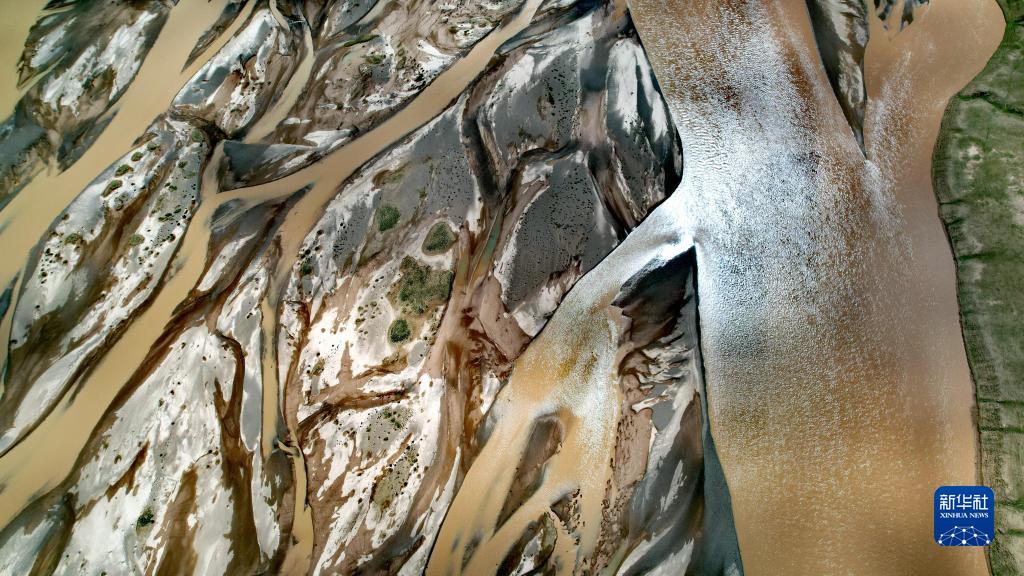 在沱沱河與當曲匯合處的囊極巴隴拍攝的辮狀河道局部(7月26日攝,無人機照片)。