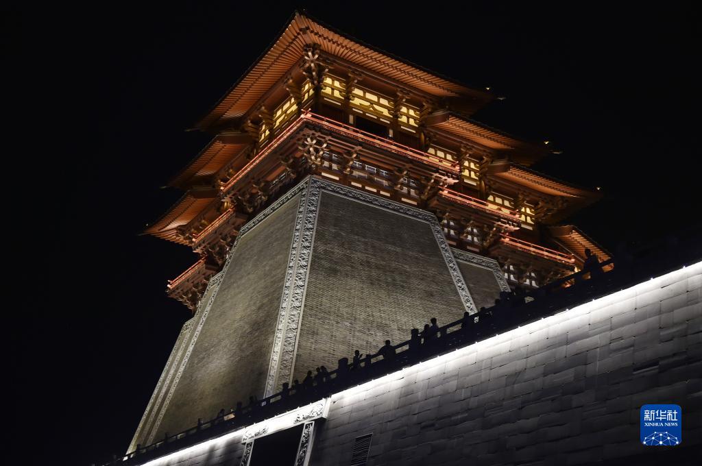 夏夜時分,河南省洛陽市隋唐洛陽城國家遺址公園應天門遺址博物館燈火輝煌,熱鬧非凡,滿目的人間煙火再現千年古都繁華盛景。