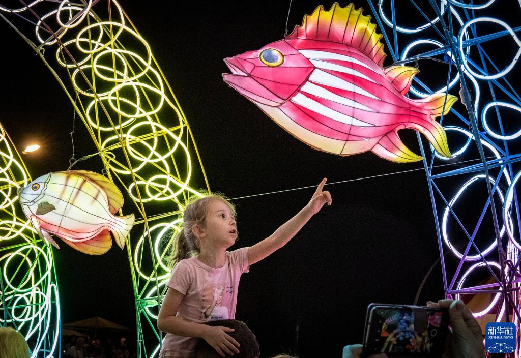 近日,以色列特拉維夫市的中國彩燈展成為當地民眾夜間納涼的好去處。此次展出的多組彩燈包括中國龍、熊貓等主題,造型各異、栩栩如生,極具中國韻味。燈展將持續至17日。