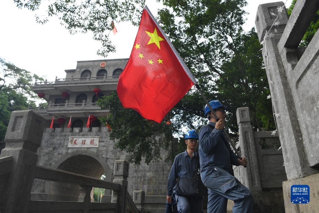 “國旗巡線班”在友誼關巡線(8月10日攝)。新華社記者 周華 攝