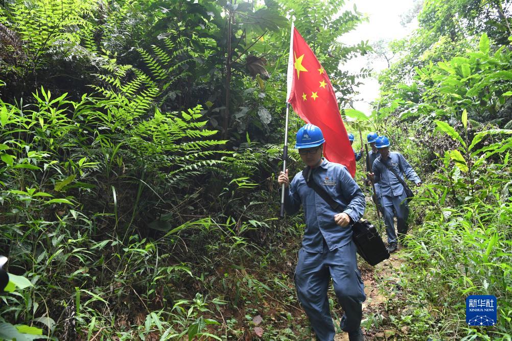 “國旗巡線班”在巡線路上(8月10日攝)。新華社記者 周華 攝