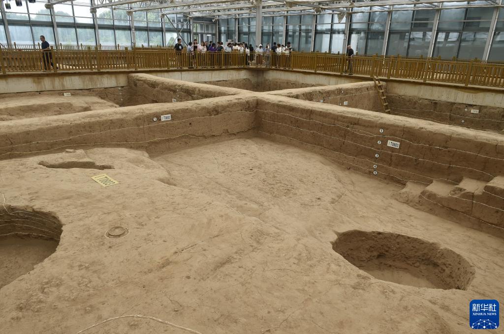 8月8日,參加集中采訪的媒體記者在位于河南省滎陽市的青臺考古遺址參觀采訪。