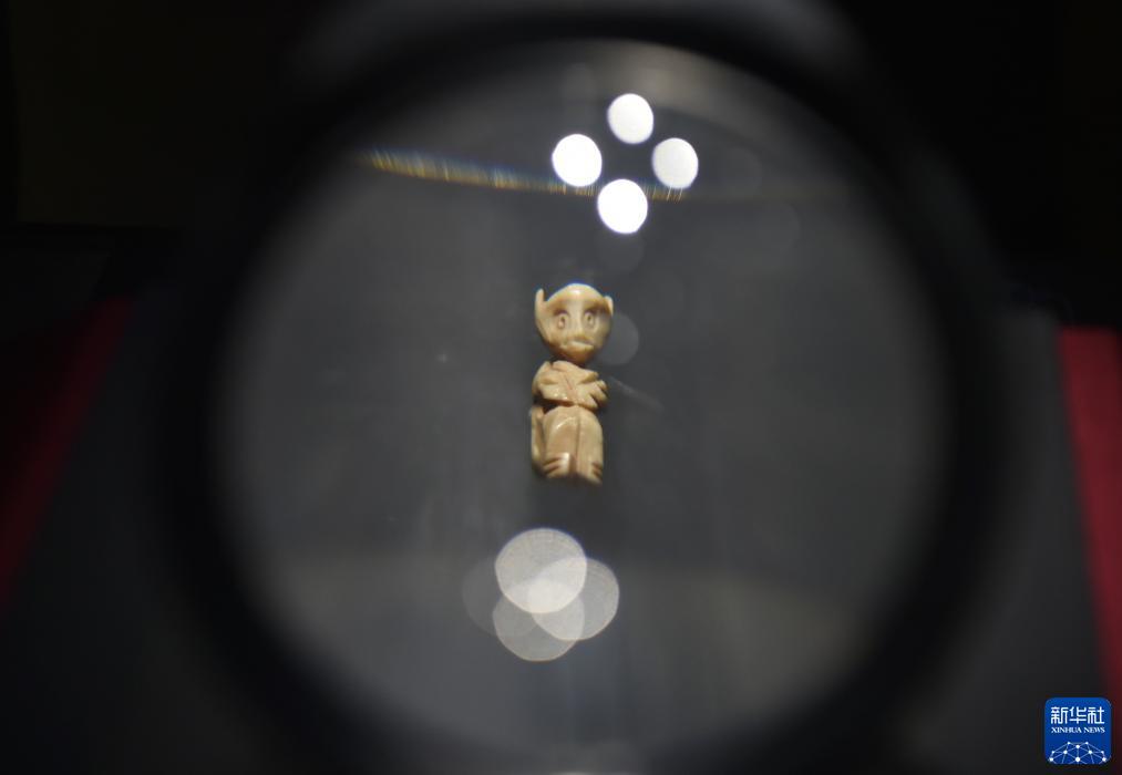 這是8月12日在位于河南省洛陽市偃師區的二里頭夏都遺址博物館拍攝的骨猴。
