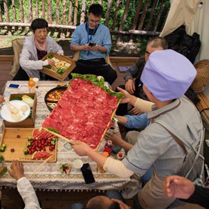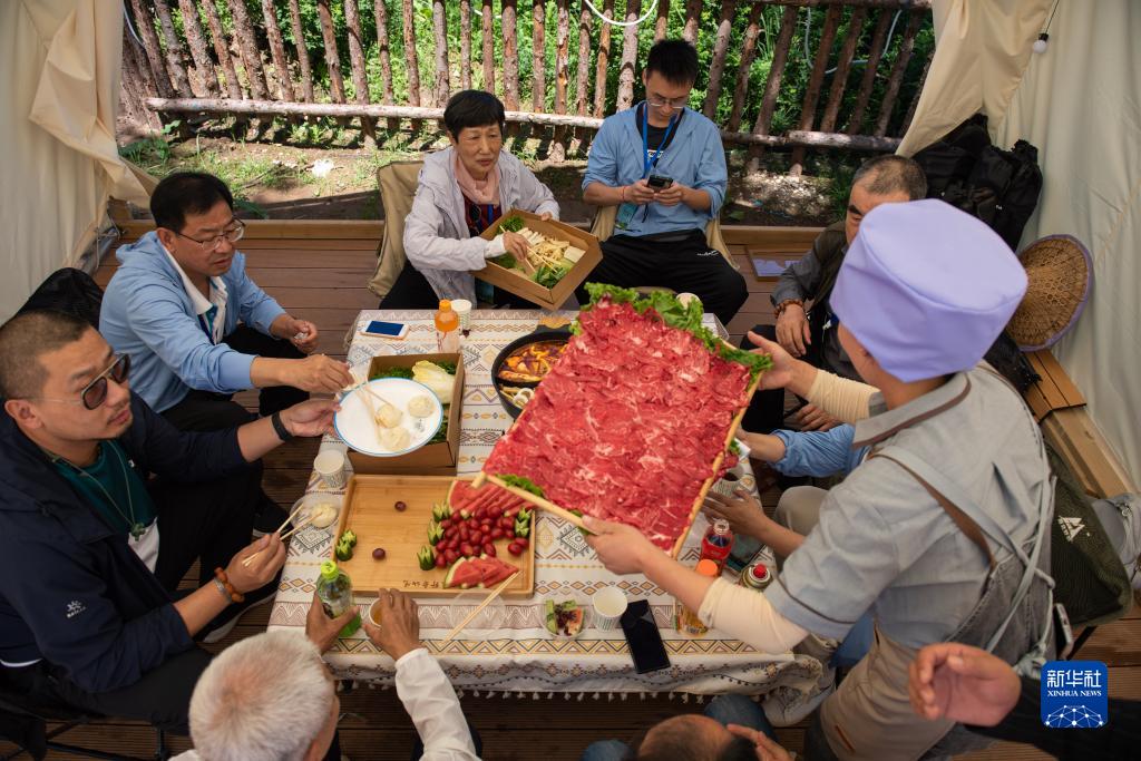 8月12日,游客在寧夏固原市涇源縣大灣鄉楊嶺村品嘗當地美食。