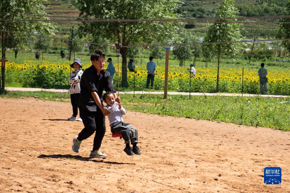 8月12日,游客在寧夏固原市涇源縣大灣鄉楊嶺村玩耍。新華社記者 李旭倫 攝