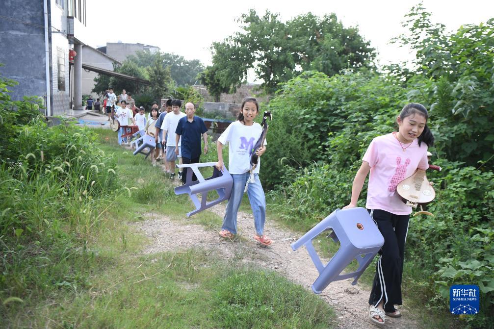 8月12日,李舒尤(右三)帶著學生們一起到枧頭洲村戶外上課。