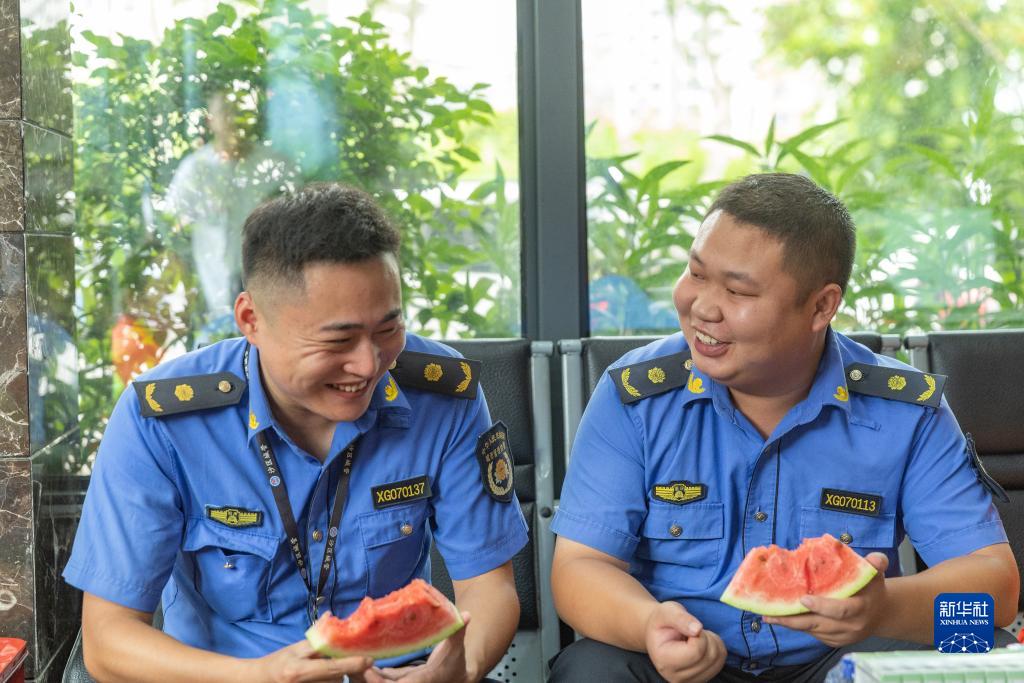 連日來,重慶市持續高溫。重慶市沙坪壩區建立的“勞動者港灣”成為許多戶外勞動者歇腳避暑的去處。