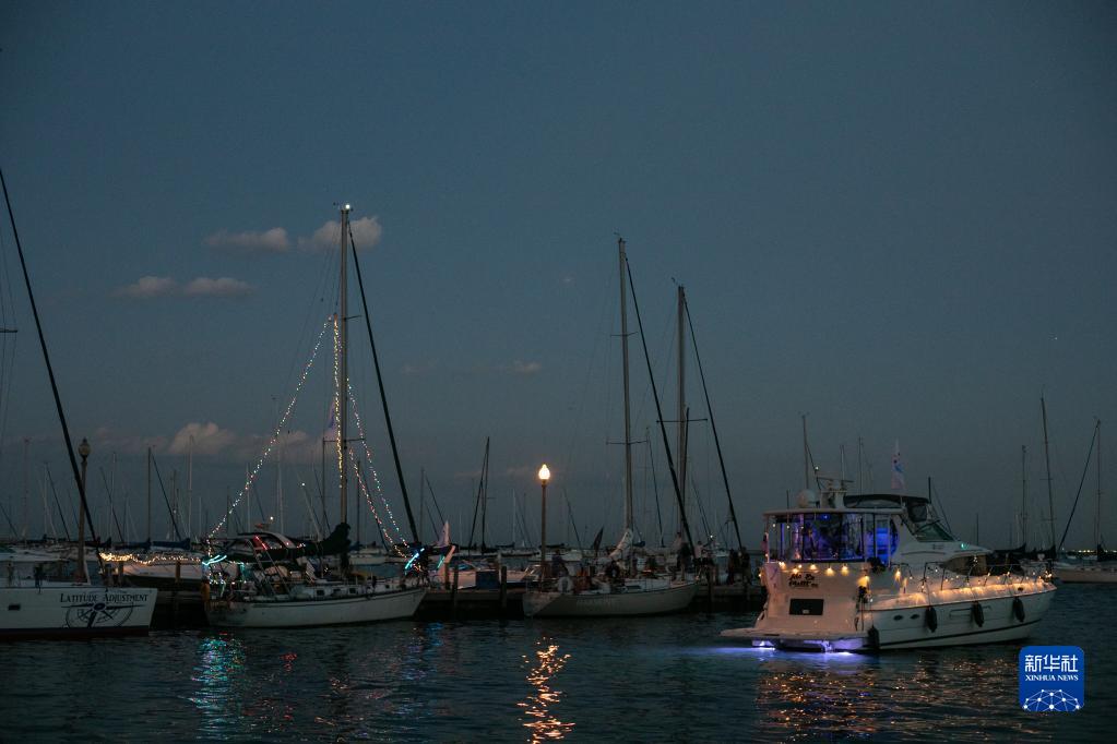 這是8月12日在芝加哥拍攝的“威尼斯游船秀”現場。