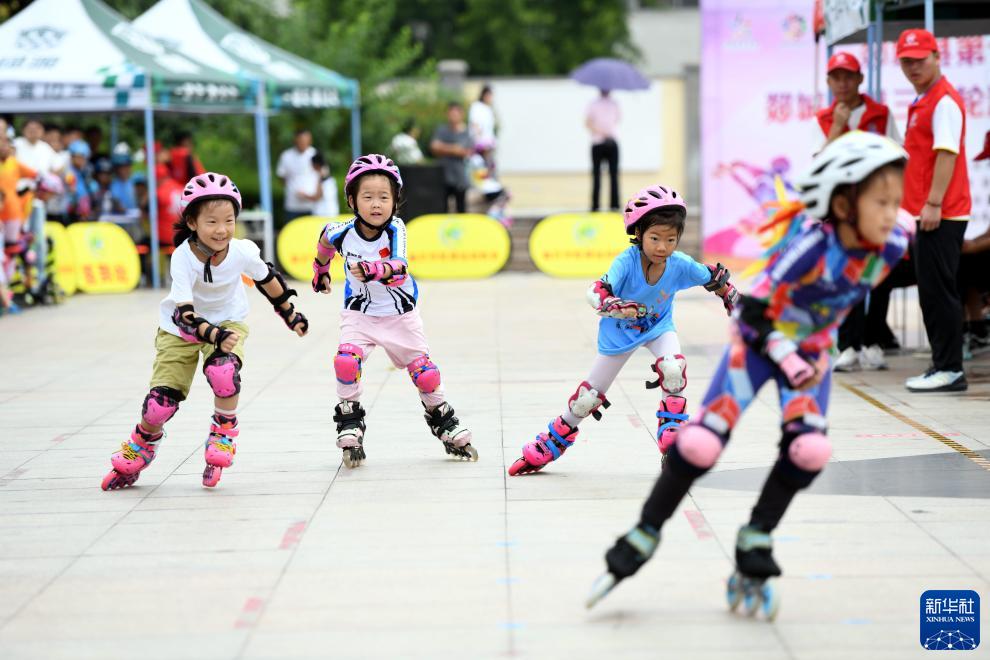 8月13日,小選手在山東省臨沂市郯城縣第三屆輪滑比賽中進行速滑比賽。
