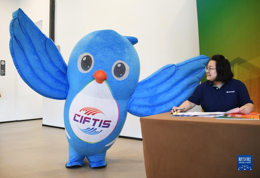 8月13日在2023年服貿會“我在服貿會等你”新聞發布會現場拍攝的吉祥物“福燕”。