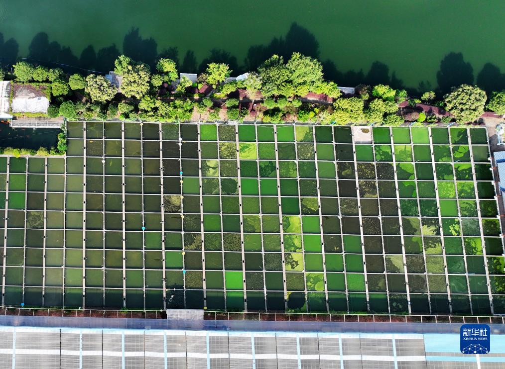 這是無人機航拍的福州市閩侯縣南通鎮古城村龍頭企業春園鯉生態養殖場(8月9日攝,無人機照片)。