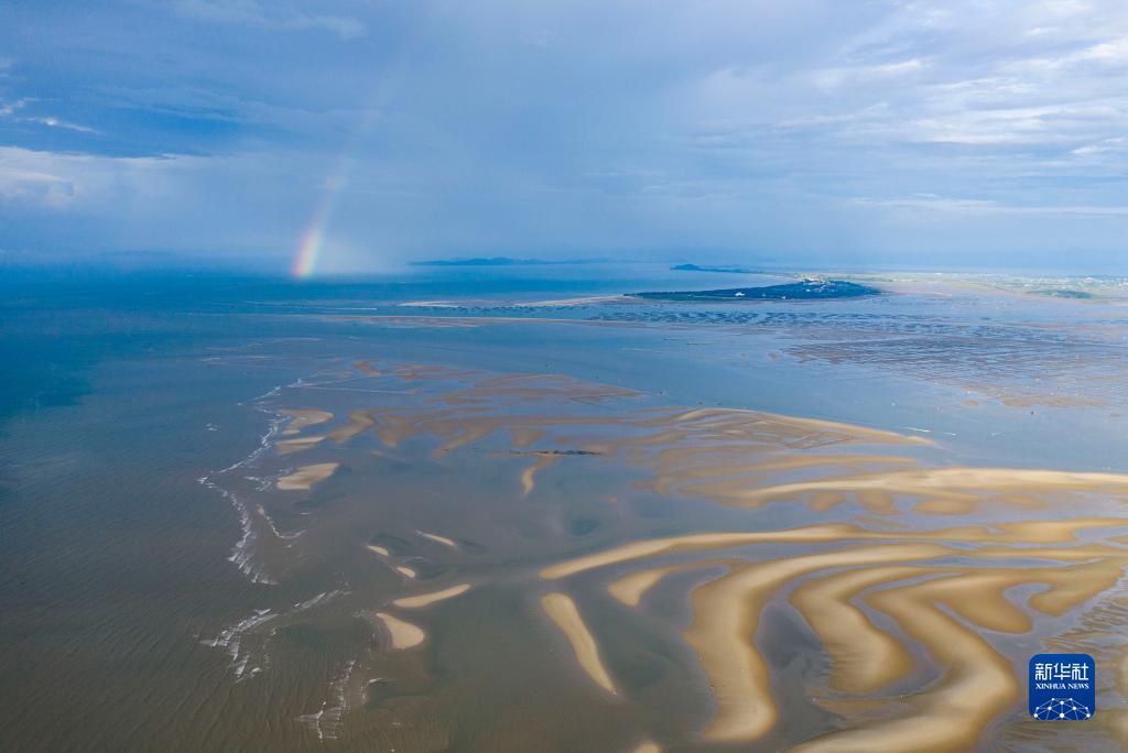 這是廣西東興市金灘彩虹景觀(8月14日攝,無人機照片)。