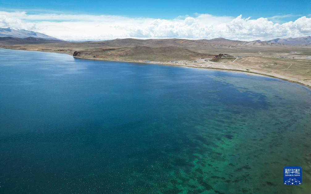 鳥瞰秋日瑪旁雍錯(無人機照片,8月13日攝)。