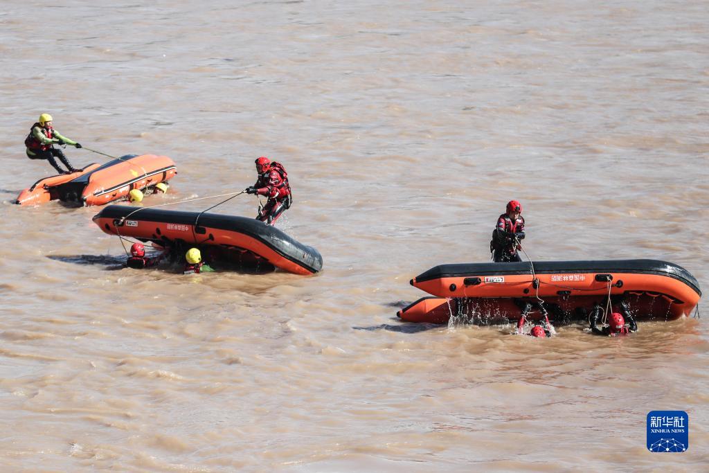 當日,甘肅省防汛抗旱指揮部在黃河蘭州段開展“藍焰逐浪·2023”水域救援實戰化演練。演練模擬強降雨致河水上漲,群眾被困、落水漂流等情景,甘肅省消防救援總隊、甘肅省森林消防總隊和藍天救援隊等圍繞情景主線開展應急救援演練。