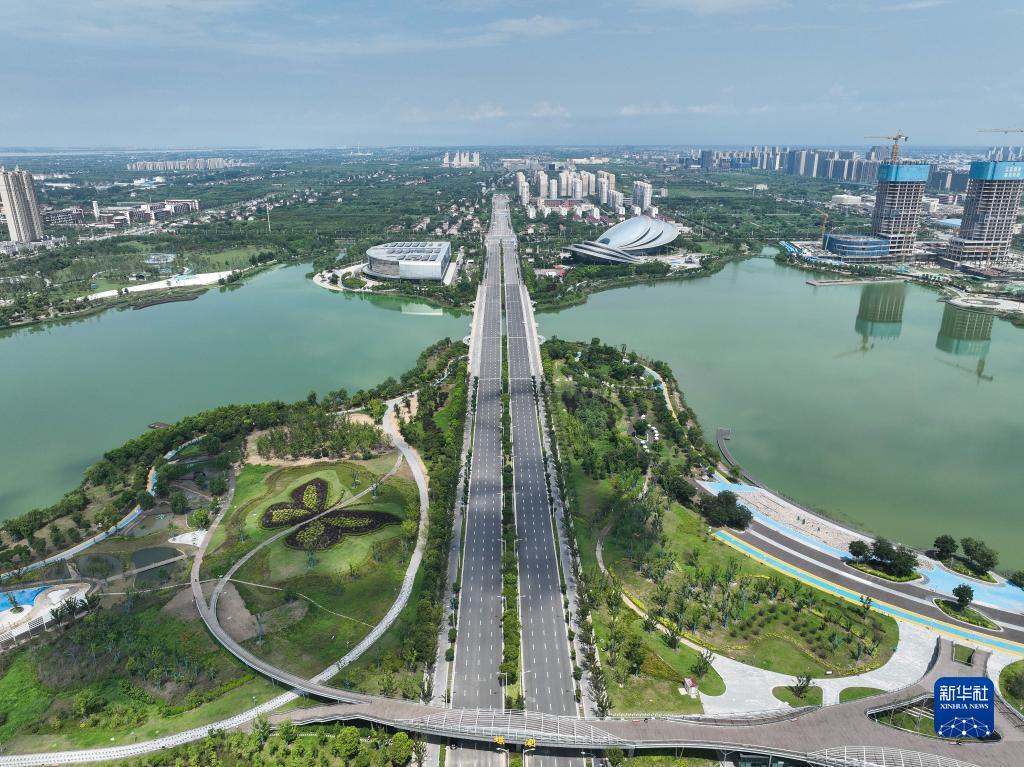 這是江蘇省啟東市蝶湖公園片區(2023年7月24日攝,無人機照片)。