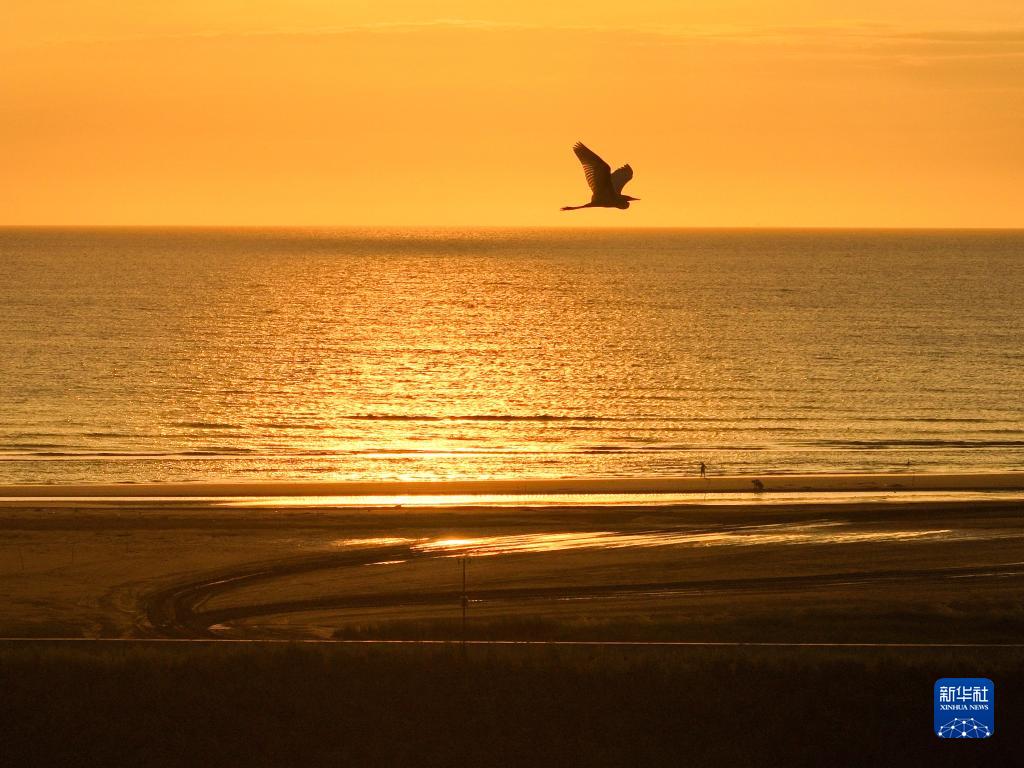 江蘇省啟東市黃金海灘景區日出景色(2023年7月25日攝,無人機照片)。