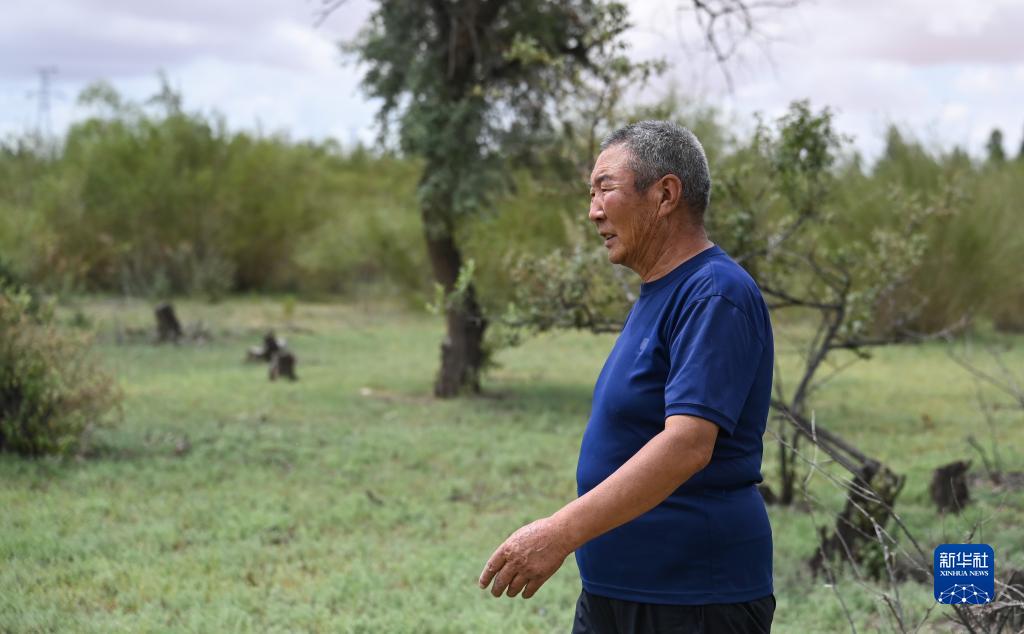 7月21日,內蒙古杭錦旗道圖嘎查原支部書記陳寧布在自家草場上行走。