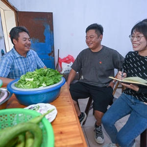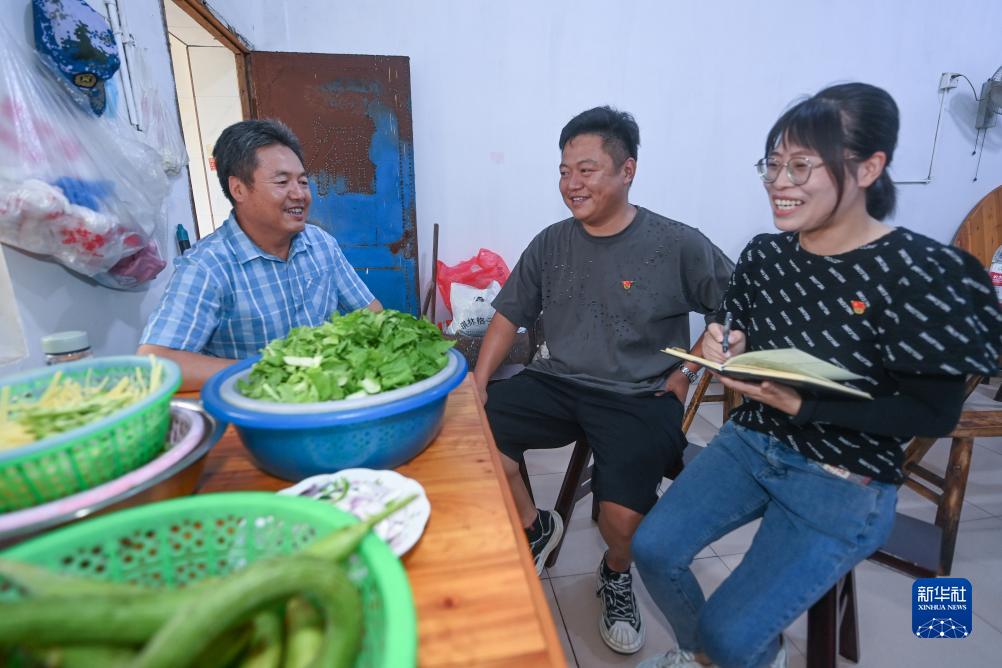 8月15日,織里鎮云村村的民主監事會成員(右一、右二)在村民家中收集民情民意。