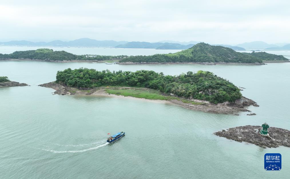 寧海灣海島護鳥隊員在海島間巡邏(6月13日攝,無人機照片)。浙東寧海灣是重要的鳥類棲息地,位于灣區的強蛟鎮組建了由漁民、民警、黨團志愿者等組成的海島護鳥隊,看護這片鳥類樂園。