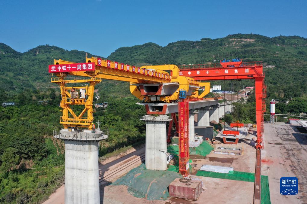8月15日,在中鐵十一局集團承建的渝湘高鐵重慶段建設現場,隨著作業人員將首榀重790.25噸的大型箱梁精準架設在箭桿灣雙線特大橋19號至20號橋墩上,標志著渝湘高鐵重慶段箱梁架設全面展開。 渝湘高鐵重慶至黔江段是國家中長期鐵路網規劃“八縱八橫”中廈渝通道的重要組成部分,從重慶站引出,途經渝中、南岸、巴南、南川、武隆、彭水等區縣,止于重慶市黔江區,正線全長269.521公里,設計時速350公里。據悉,渝黔鐵路建成通車后,與黔常鐵路、渝廈高鐵常德至長沙段連接,成為成渝城市群、長江中游城市群、海西城市群間高速客運交流的通道,將有效填補渝東南武陵山區城鎮群沒有高鐵的空白,與重慶主城區實現1小時通達,成渝地區雙城經濟圈與長江中游城市群、海峽西岸城市群的快捷通道全面打通,對拉動投資、發展產業、帶動就業、助推鄉村振興、助推西部地區發展具有重大意義。