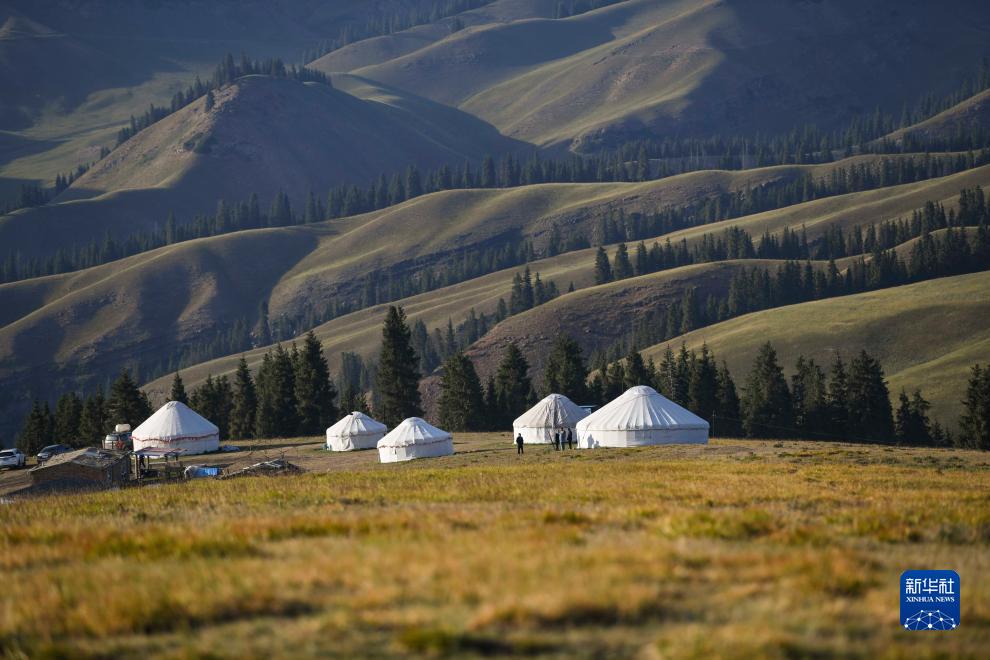 索爾巴斯陶(哈薩克語,意為“堿泉”)地處新疆天山山脈中部的北麓,平均海拔2000多米,是新疆昌吉市廟爾溝鄉重要的高山牧場。走進這里,滿目生機勃勃:草原隨著山勢起伏,森林遍布,牧民居住的氈房和小木屋點綴其間,牛羊悠閑覓食……美不勝收。良好的生態環境承載著當地牧民的生產生活,同時也吸引人們前來露營、賞景、體驗牧區傳統與現代并存的生活方式。