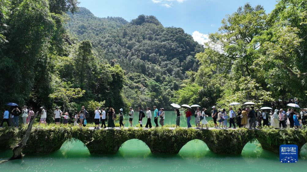 日前,前往貴州省荔波小七孔風景區游玩的游客激增,景區各部門通力合作,服務游客,每天迎客超過6.2萬人次。