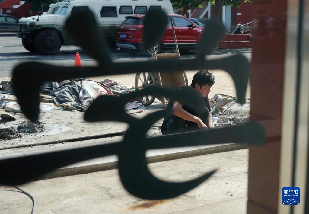 8月14日,工人抓緊修繕北京市門頭溝區妙峰山民族學校。