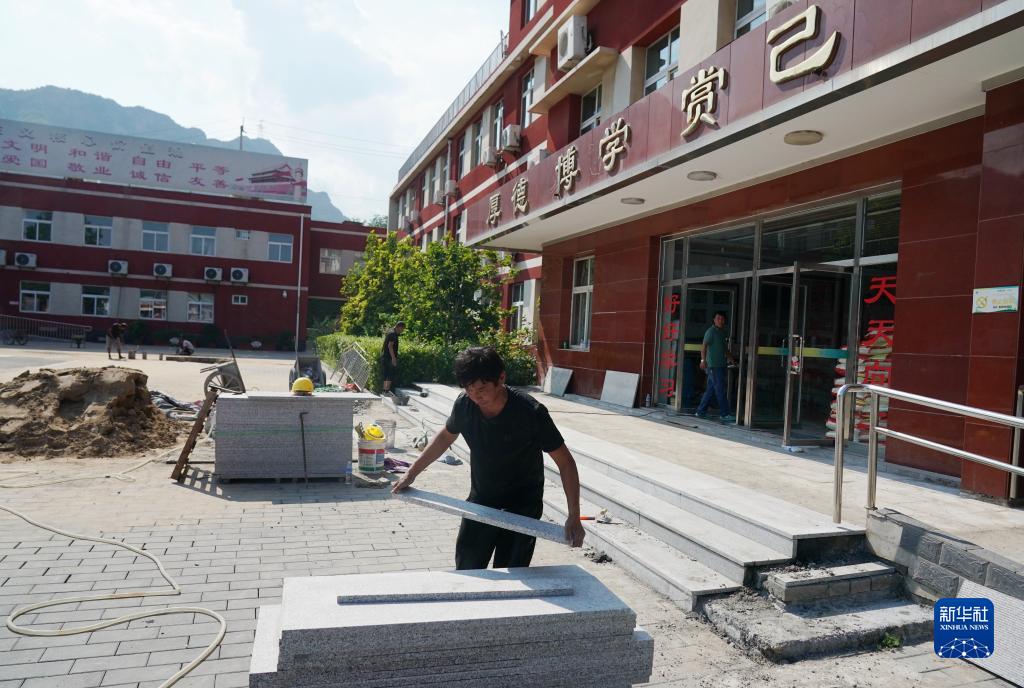 8月14日,工人抓緊修繕北京市門頭溝區妙峰山民族學校。
