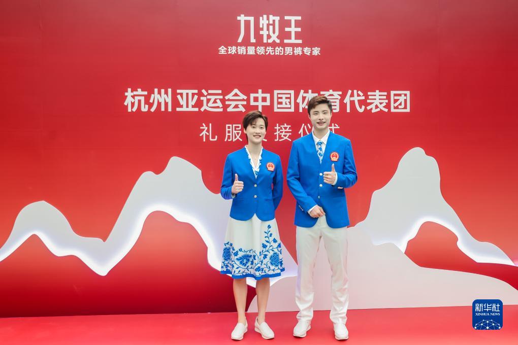 當日,杭州亞運會中國體育代表團開幕式禮服“星耀”交接儀式在北京舉行。
