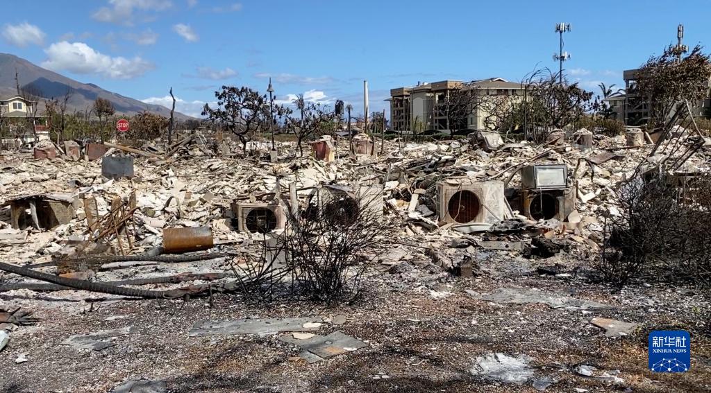 這是8月14日在美國夏威夷州毛伊島拉海納拍攝的野火燒毀的殘骸。